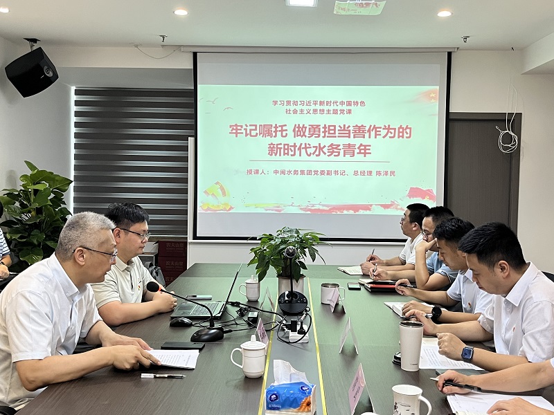 7月10日上午,Kaiyun开云官方网站党委副书记、总经理陈泽民到中闽建工公司,以《牢记嘱托 做勇担当善作为的新时代水务青年》为题,向中闽建工公司全体党员干部职工讲授主题教育专题党课。